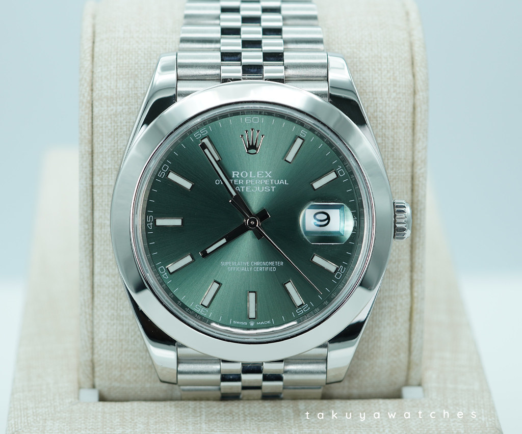 An Excellent Condition & Very Beautiful 2022 41mm Rolex 126300 Datejust 41 Stainless Steel, Smooth Bezel with Mint Green Dial. It’s on Jubilee Bracelet. New Rolex 3235 Movement. Purchased from Rolex Authorized Dealer in 08.2022.