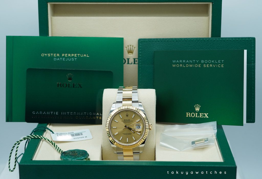 An Excellent Condition & Very Beautiful 2025 41mm Rolex 126333 Datejust 41, in 18K Yellow Gold & Stainless Steel. Fluted Bezel with Champagne Dial. It’s on Oyster Bracelet. Purchased from Rolex Authorized Dealer in 02.2025.