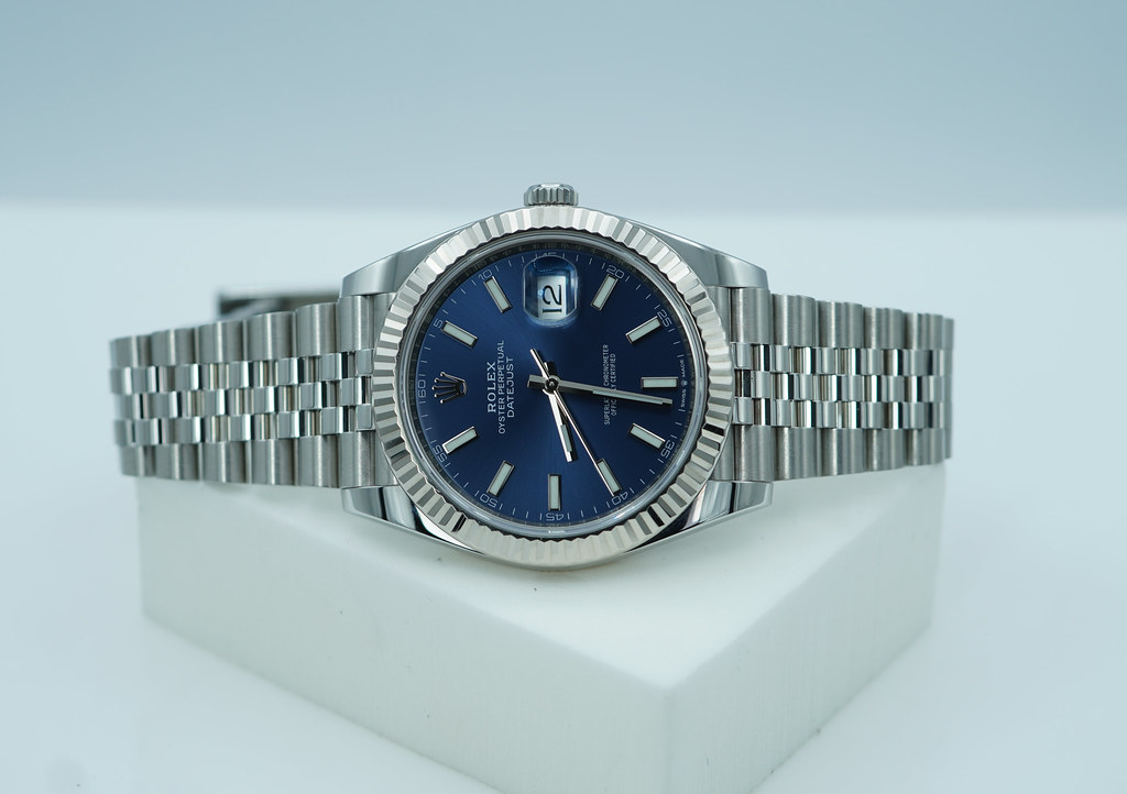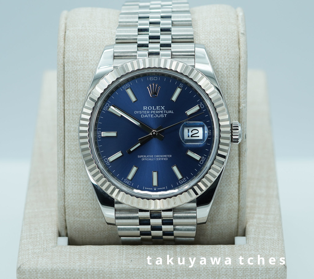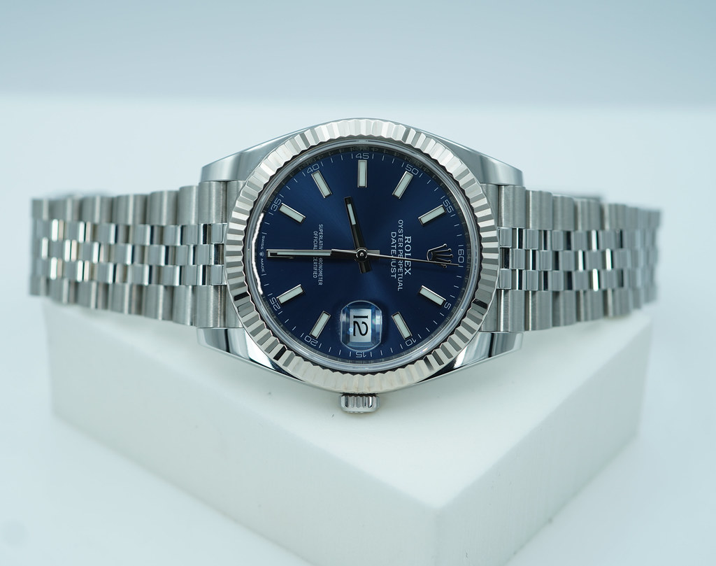 An Excellent Condition & Very Beautiful 2020 41mm Rolex 126334 Datejust 41 Stainless Steel with 18K White Gold Fluted Bezel & Blue Index Dial. It’s on Jubilee Bracelet. Purchased from Rolex USA Authorized Dealer in 06.2020.