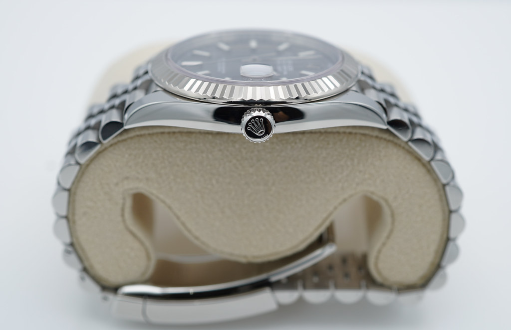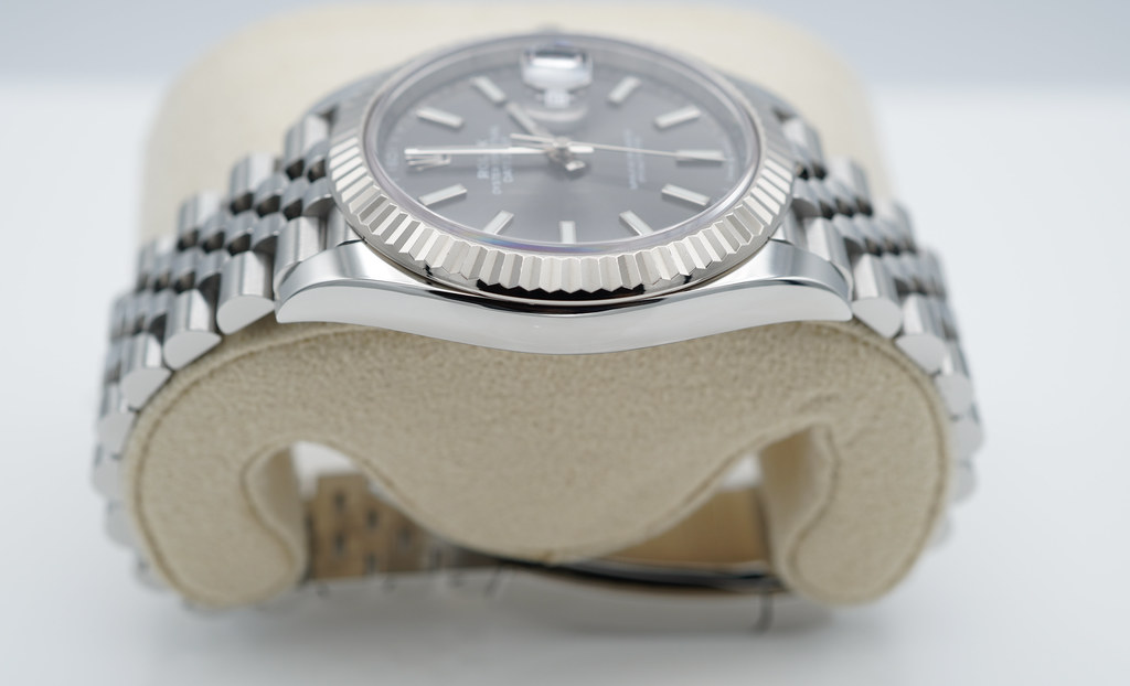 An Excellent Condition & Very Beautiful 41mm Rolex 126334 Datejust 41 Stainless Steel with 18K White Gold Fluted Bezel, Slate Index Dial, & on Jubilee Bracelet. Rolex 3235 Movement. The Watch received Full Services from Rolex Service Center in 05.2023.