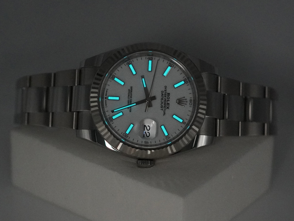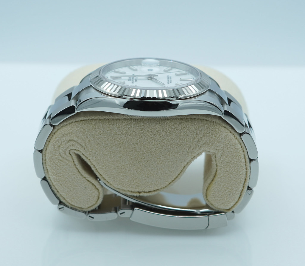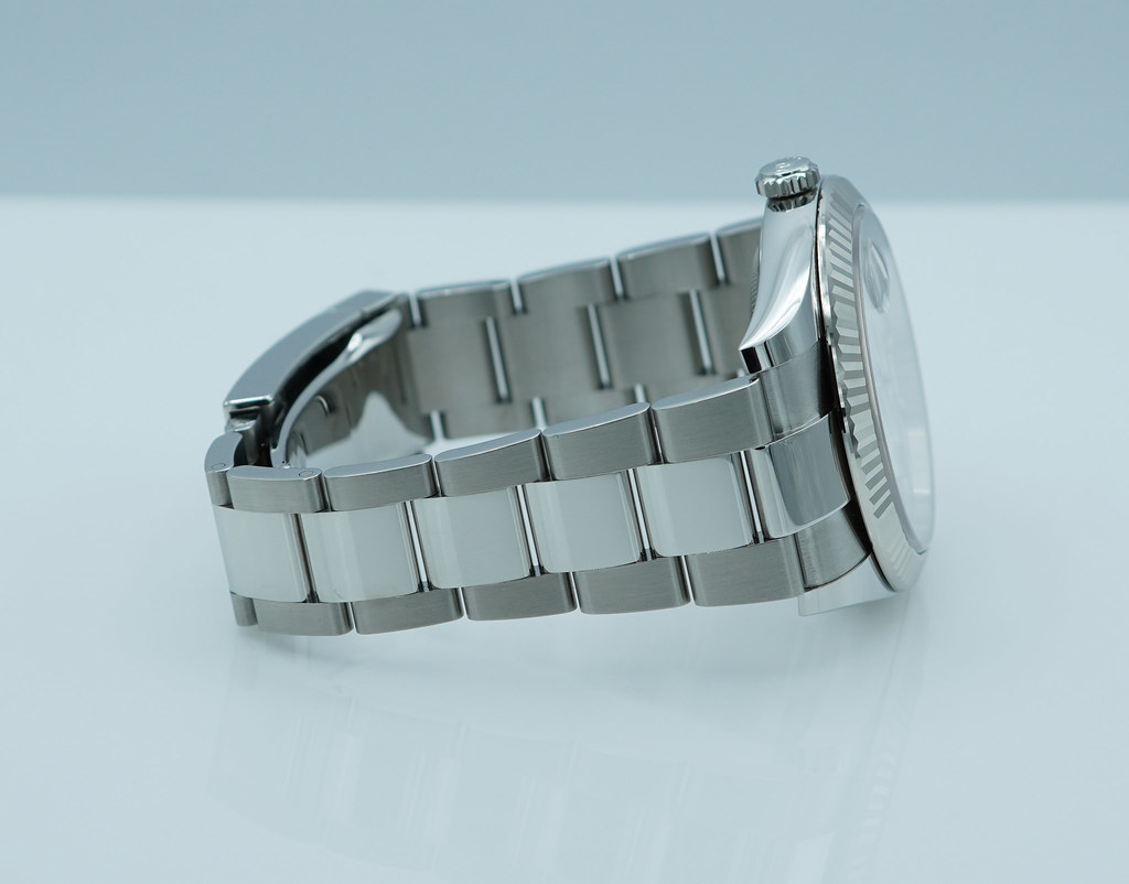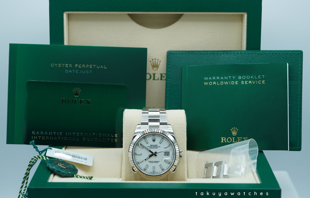 An Excellent, Unpolished Condition & Very Beautiful 2022 41mm Rolex 126334 Datejust 41 Stainless Steel with 18K White Gold Fluted Bezel, White Index Dial. It’s on Oyster Bracelet. Purchased from Rolex Authorized Dealer in 07.2022.
