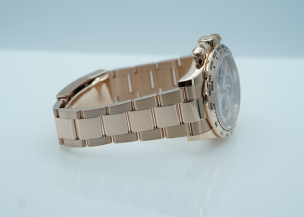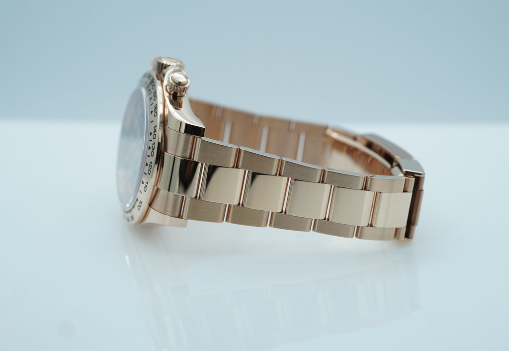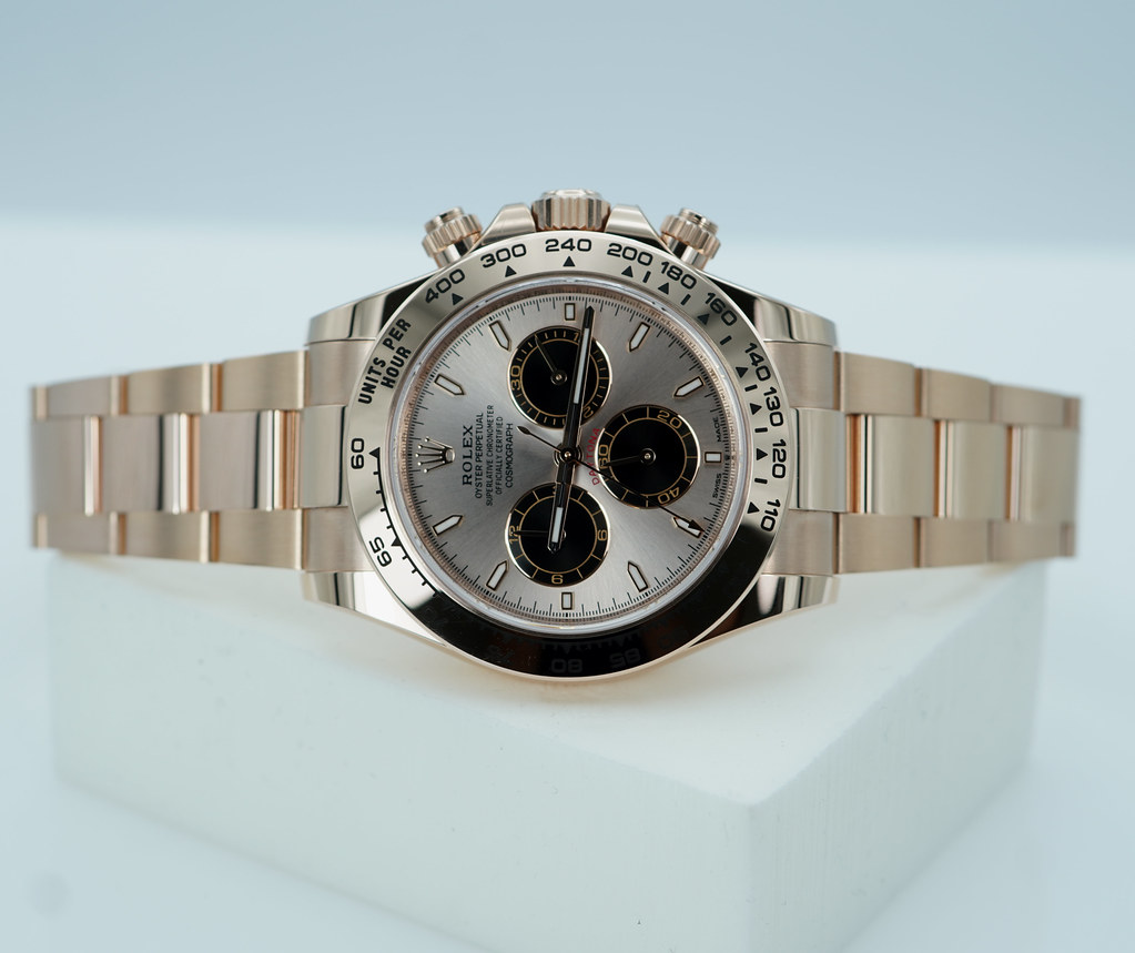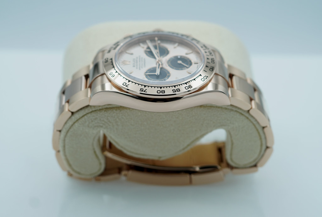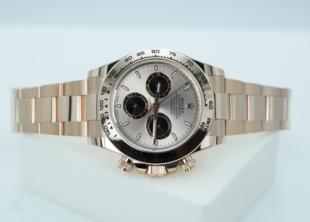 An Excellent Condition & Very Beautiful New Model 2025 40mm Rolex 126505 Cosmograph Daytona 18K Rose Gold with Factory Sundust Dial & Black Sub Dials. Purchased from Rolex Authorized Dealer in 12.2024.