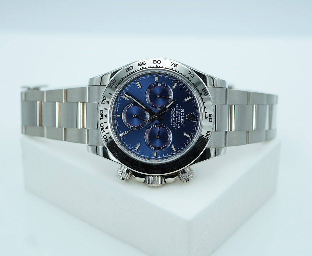 An Excellent Condition & Very Beautiful New Model 2025 40mm Rolex 126509 Cosmograph Daytona 18K White Gold with Blue Dial . Purchased from Rolex Authorized Dealer in 06.2025.