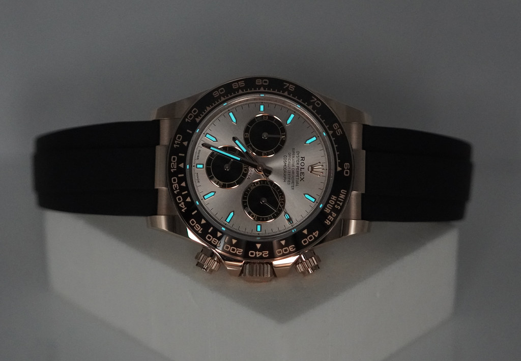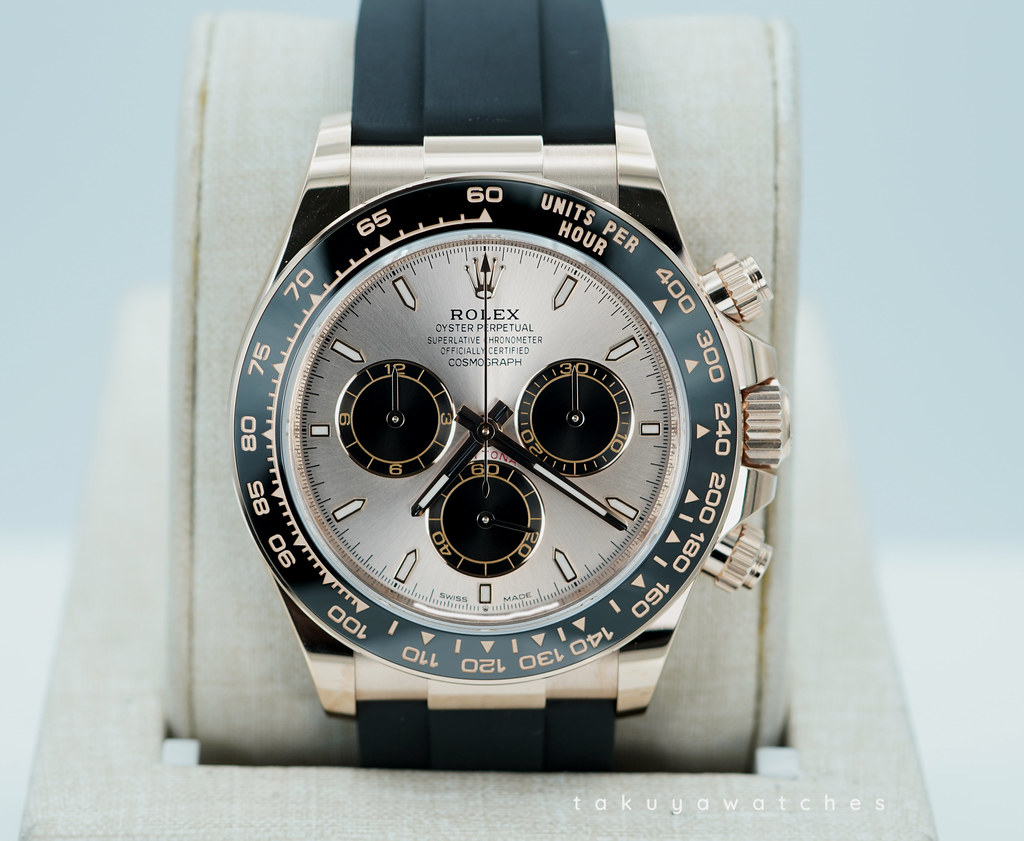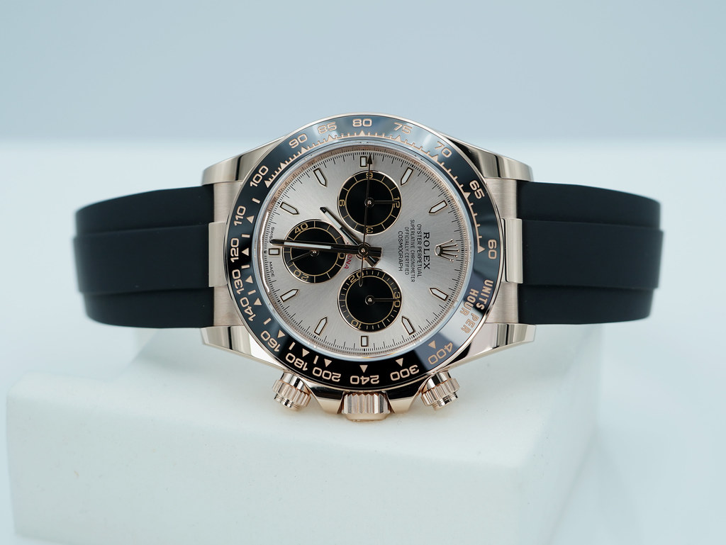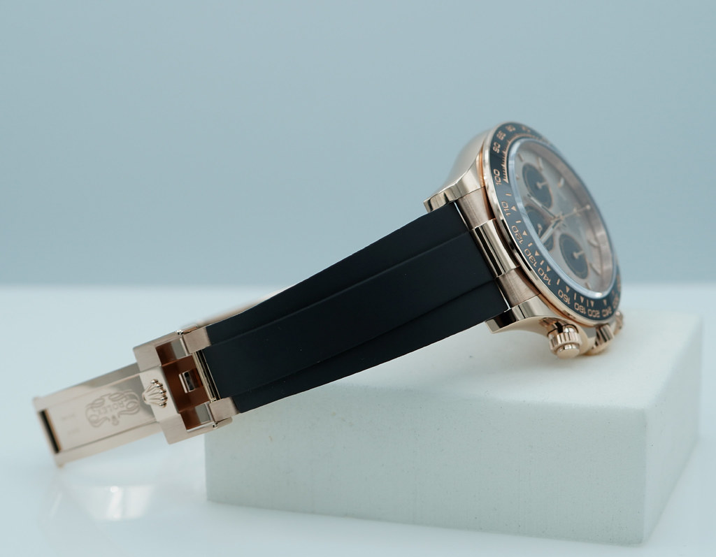 An Excellent, Unpolished Condition & Very Beautiful New Model 2025 40mm Rolex Daytona 126515LN 18K Everose Gold. Sundust Dial with Black Sub Dials. Its on Oysterflex Strap with Rose Gold Glidelock Clasp. Purchased from Rolex Authorized Dealer in 06.2025.