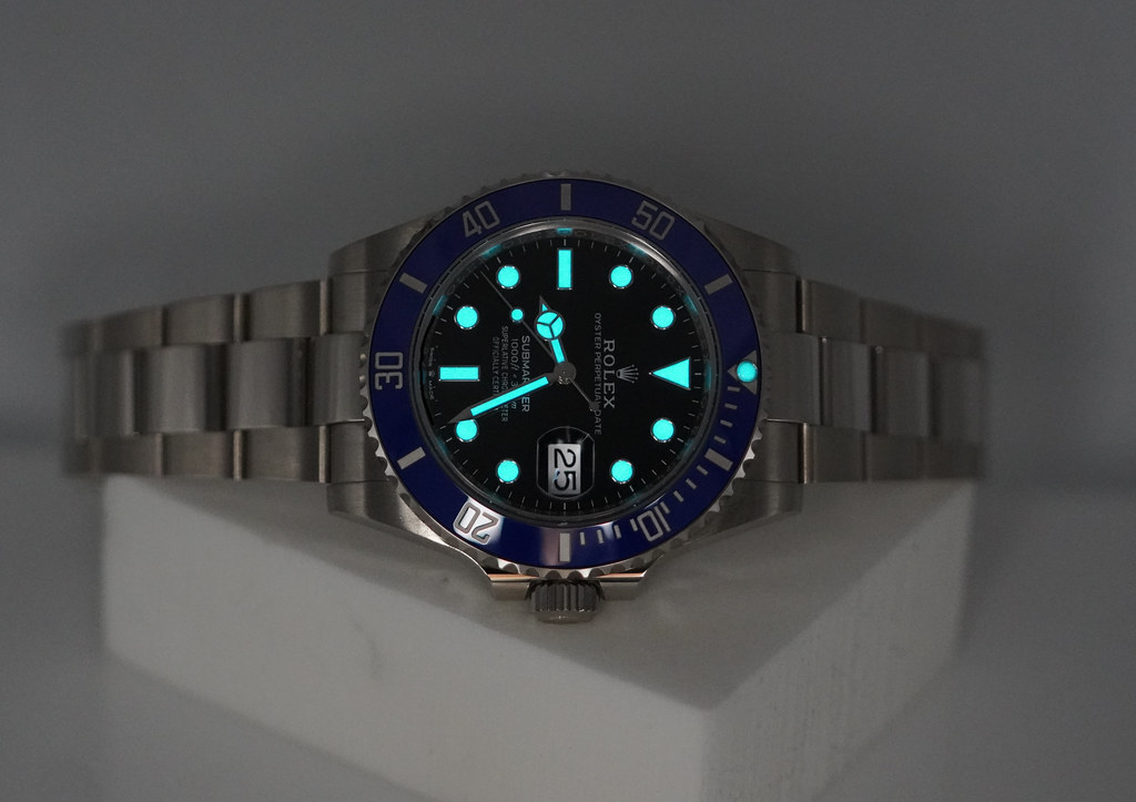 An Excellent Condition & Very Beautiful 2025 41mm Rolex 126619lb Submariner Date 18K White Gold with Blue Ceramic Bezel. Purchased from Rolex Authorized Dealer in 02.2025.