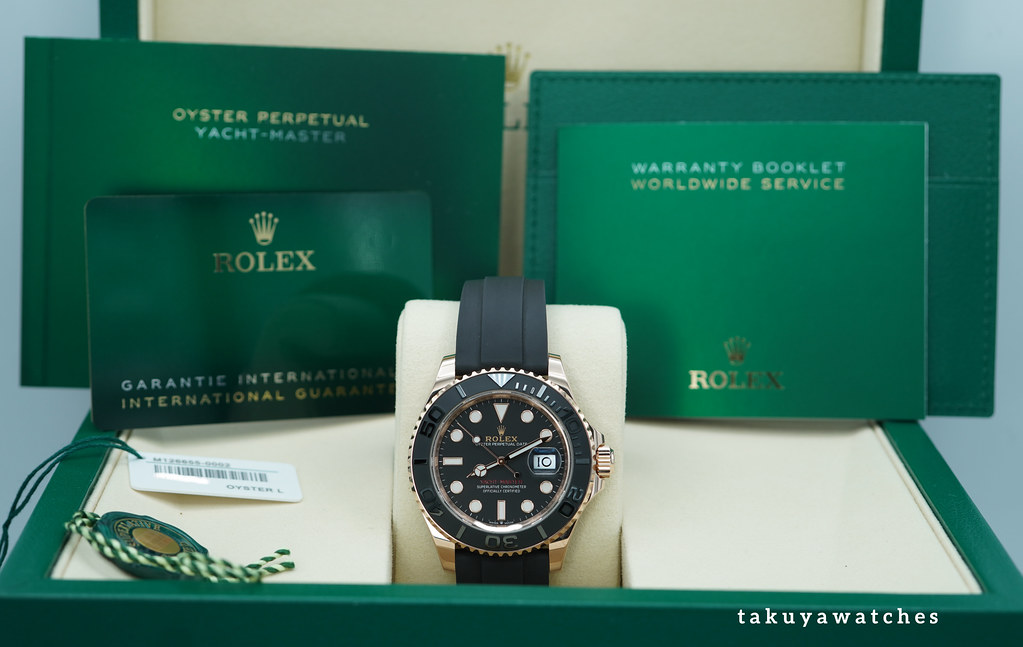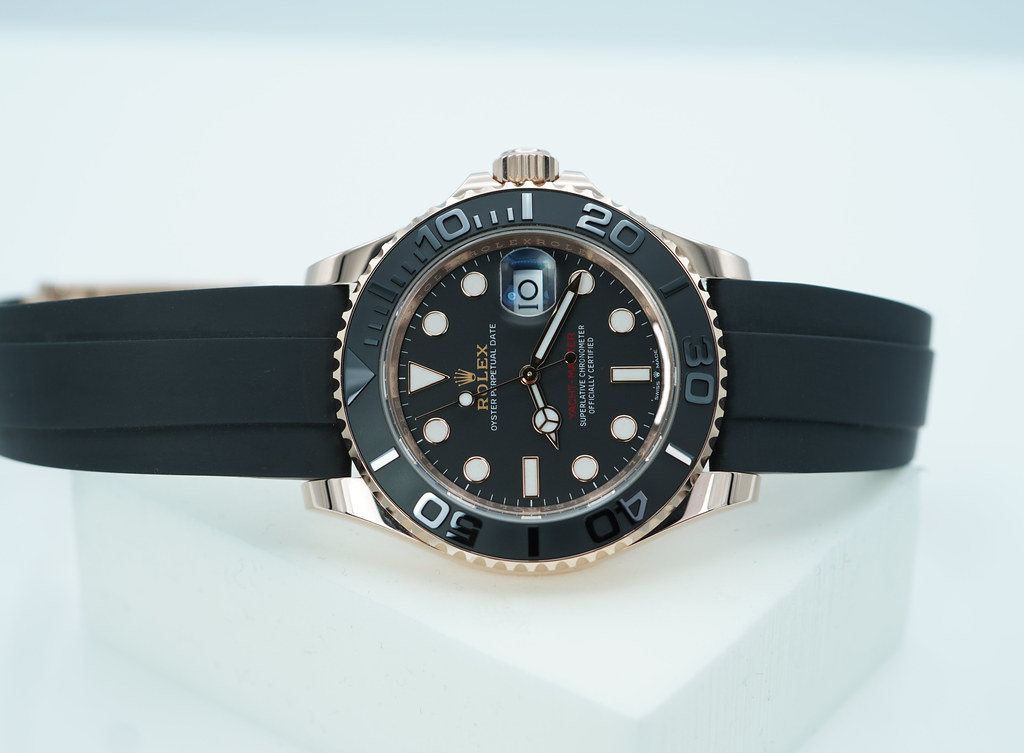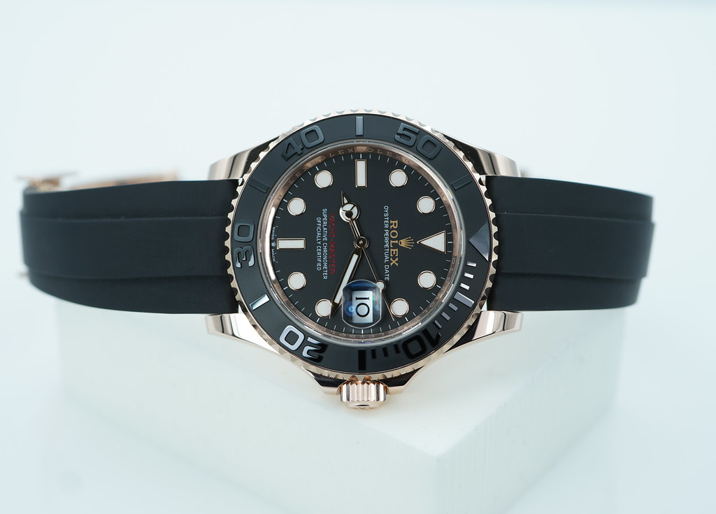 An Excellent Condition & Very Beautiful 2025 40mm Rolex 126655 Yacht-Master 18K Rose Gold with Upgraded 3235 Movement. Its Oysterflex Strap with Rose Gold Glidelock Extension Clasp. Purchased from Rolex Authorized Dealer in 06.2025.