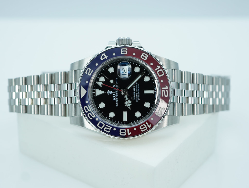 An Excellent Condition & Very Beautiful 2019 40mm Rolex 126710 Blro Gmt Master 2 Stainless Steel with Pepsi Red & Blue Ceramic Bezel. Its on Jubilee Bracelet. Purchased from Rolex USA Authorized Dealer in 12.2019.