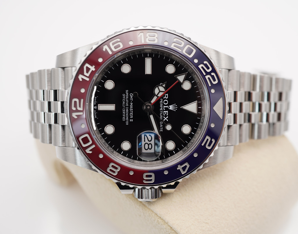 An Excellent Condition & Very Beautiful 40mm Rolex 126710 Blro Gmt Master 2 Stainless Steel with Pepsi Red & Blue Ceramic Bezel, on Jubilee Bracelet. Purchased from Rolex USA Authorized Dealer in 12.2019.