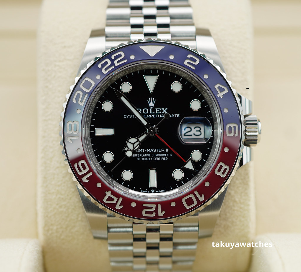 An Excellent Condition & Very Beautiful 2022 40mm Rolex 126710 Blro Gmt Master 2 Stainless Steel with Pepsi Red & Blue Ceramic Bezel, on Jubilee Bracelet. Purchased from Rolex Authorized Dealer in 03.2022.
