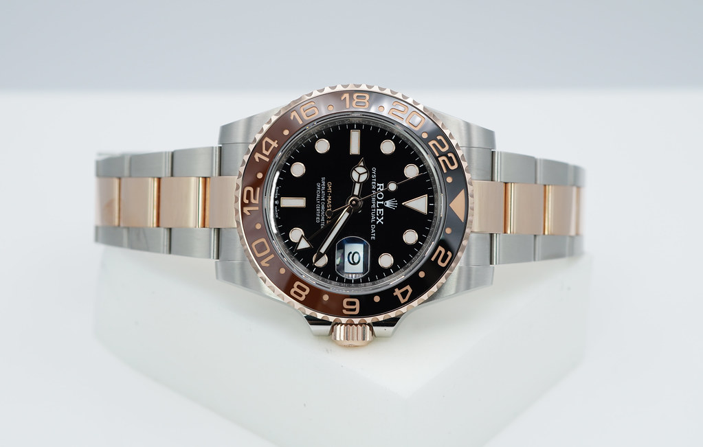 A Mint, Unpolished Condition & Very Beautiful 40mm Rolex 126711chnr Gmt Master 2 Root Beer with Brown & Black Ceramic Bezel, in Stainless Steel & 18K Everose Gold. Purchased from Rolex Authorized Dealer in 07.2023.