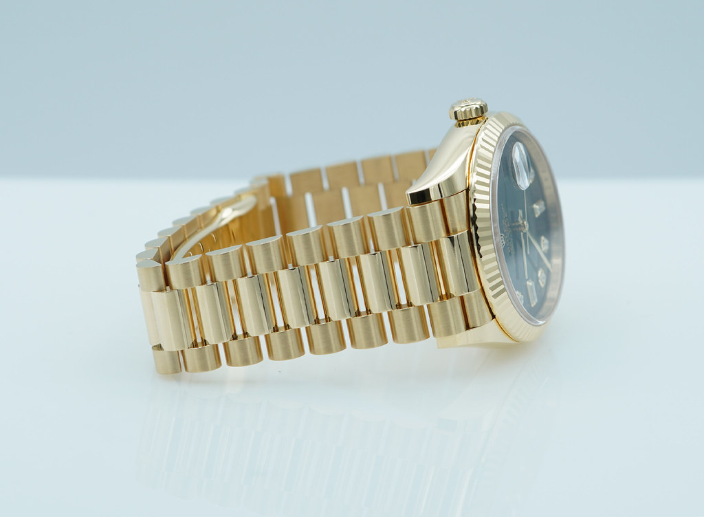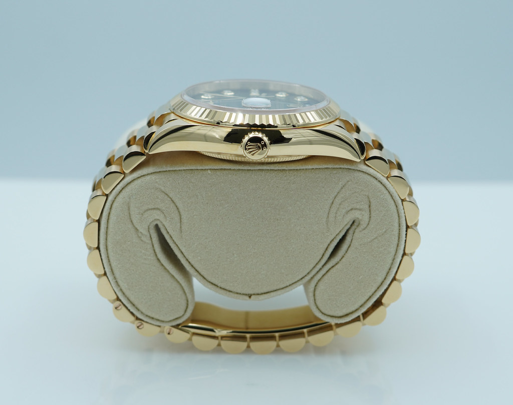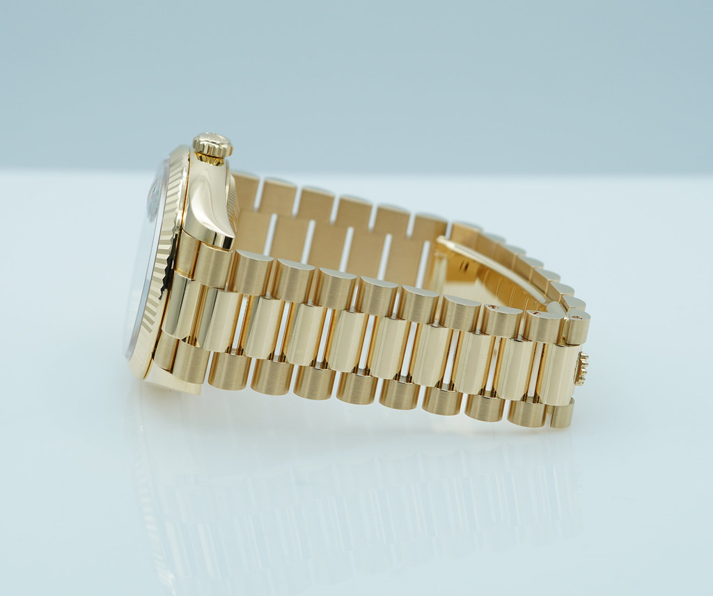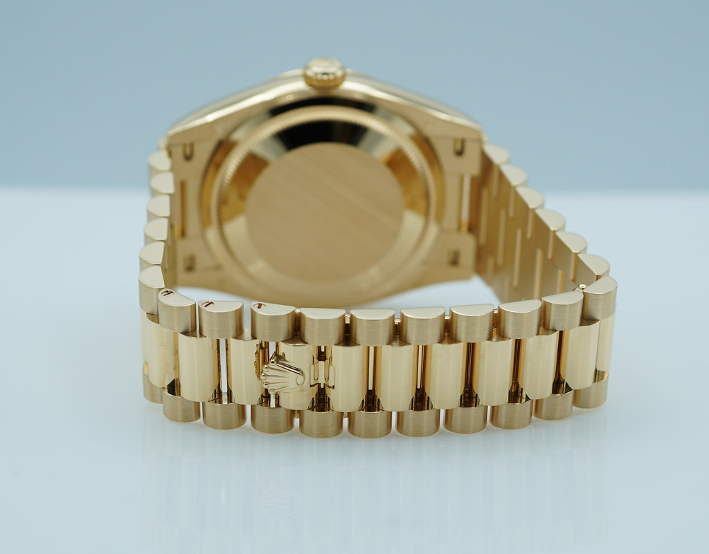 A Mint, Unpolished Condition & Very Beautiful 2024 36mm Rolex 128238 18K Yellow Gold Day-Date President with Green Ombré Diamond-Set Dial. New Rolex 3255 Movement. Purchased from Rolex Authorized Dealer in 04.2024. Watch Running Perfect with Non Issues. Full Links. Full Set & Under 5 Years Factory Warranty.