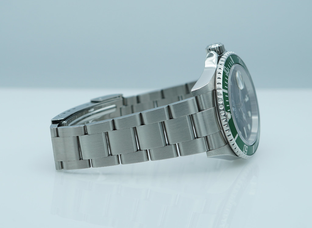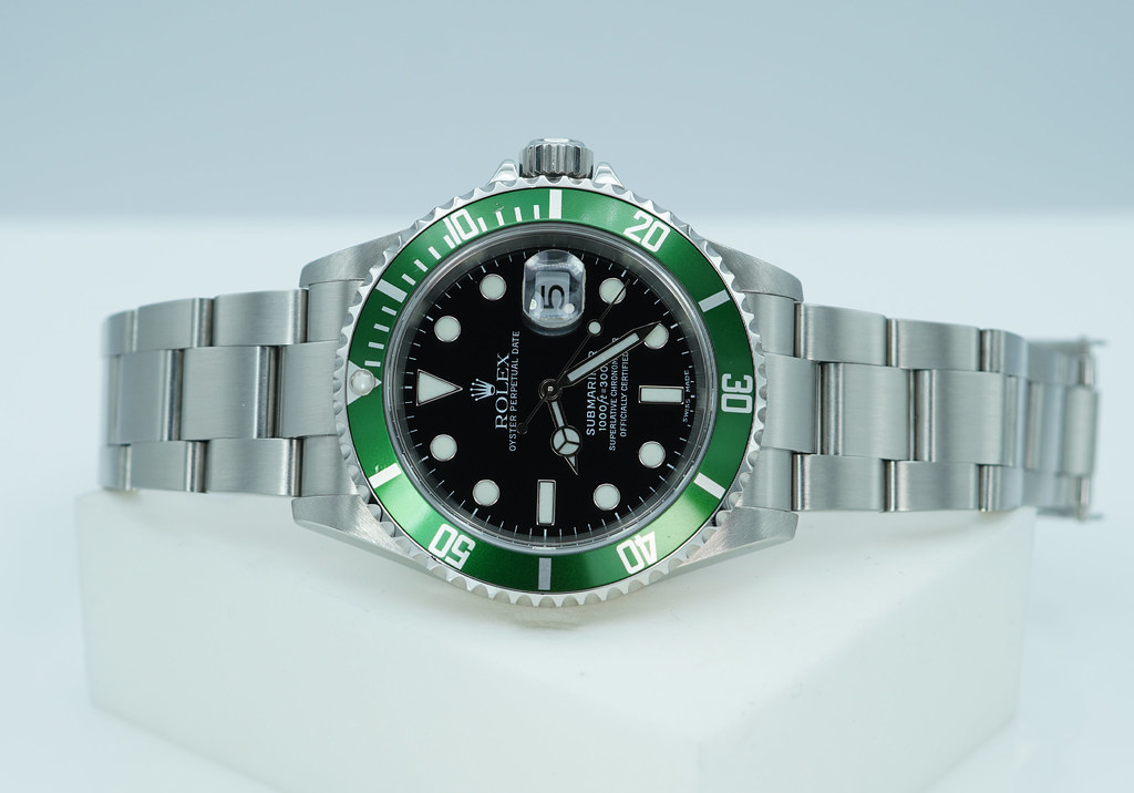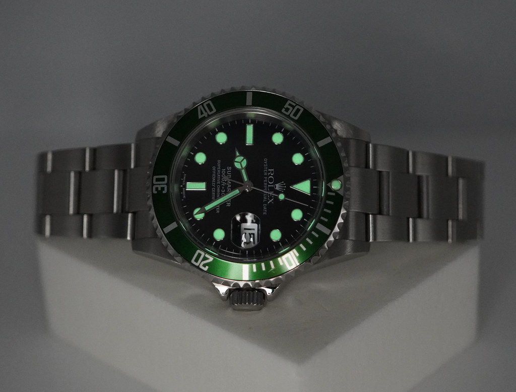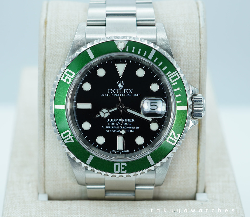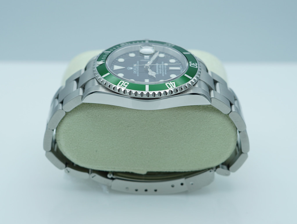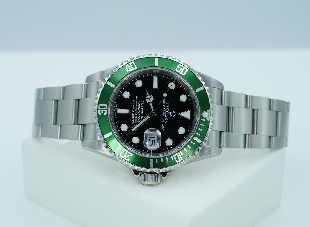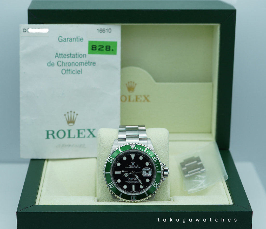 A Great Condition & Beautiful Discontinued 2005 40mm Rolex Kermit 16610LV Submariner Date Stainless Steel with Green Bezel & Black Dial in D Serial. Purchased from Rolex Authorized Dealer in 10.2005.