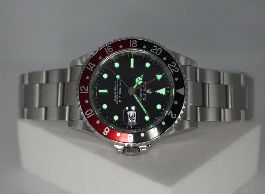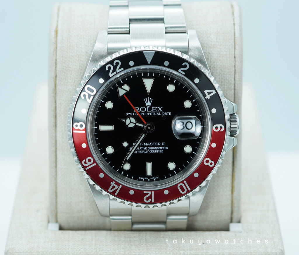 An Excellent Condition & Very Beautiful 40mm Rolex 16710 Gmt Master 2 Stainless Steel with Black and Red Coke Bezel. Thick Case with No Lug Holes. F Serial Circa 2005. Purchased from Rolex AD in 03.2005.