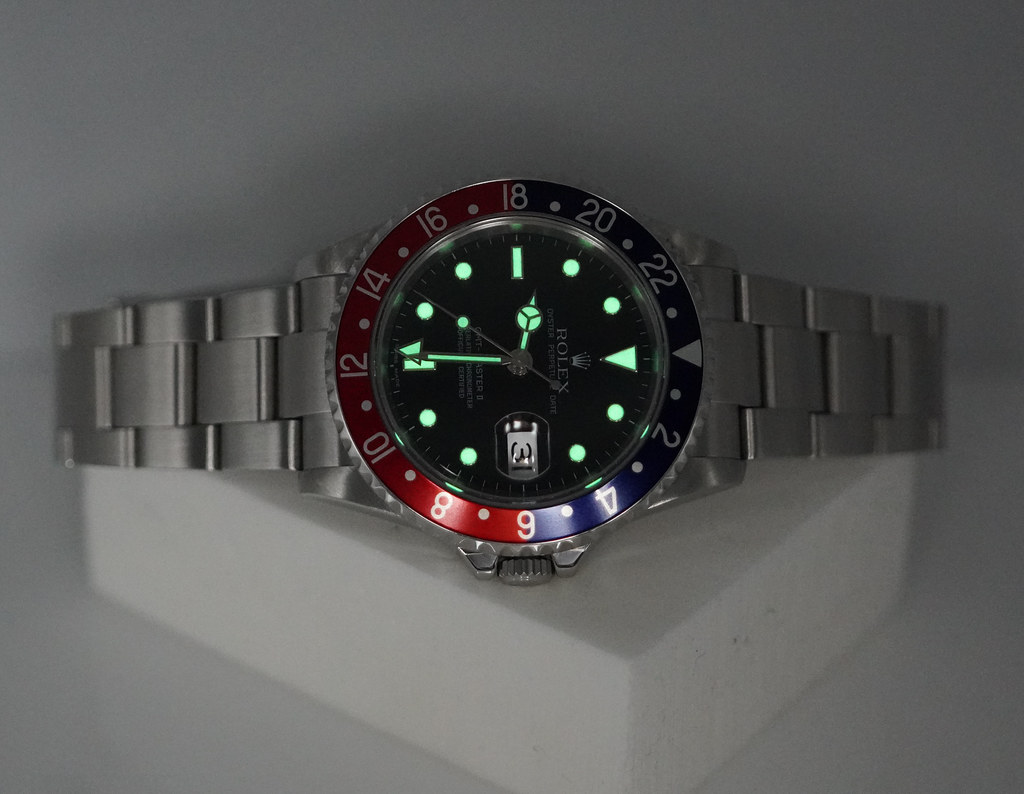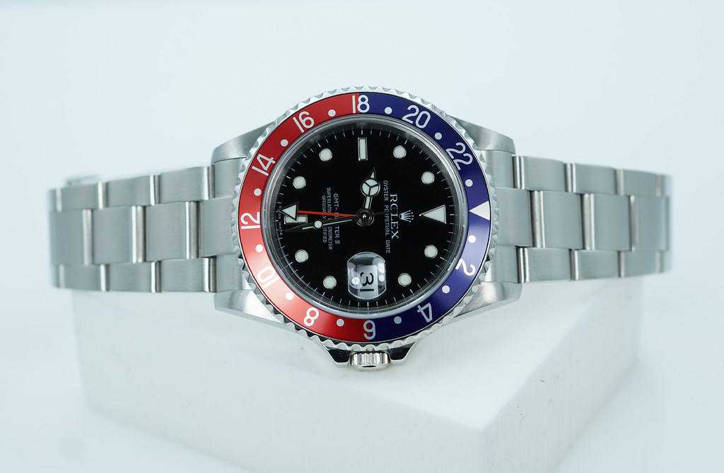 An Excellent Condition & Very Beautiful 40mm Rolex 16710 16710blro Gmt Master 2 Stainless Steel with Original Red & Blue Pepsi Bezel, Z Serial with No Holes Case, and SEL 78790A Bracelet with the clasp stamped with EO2 code. Purchased from Rolex USA Authorized Dealer in 2007. The watch just received Complete Services and New Insert Bezel from Rolex USA Service Center in 03.2025. Watch currently running perfect with Non Issues. Full Links. Boxes & Papers. Under 2 Years Factory Warranty.