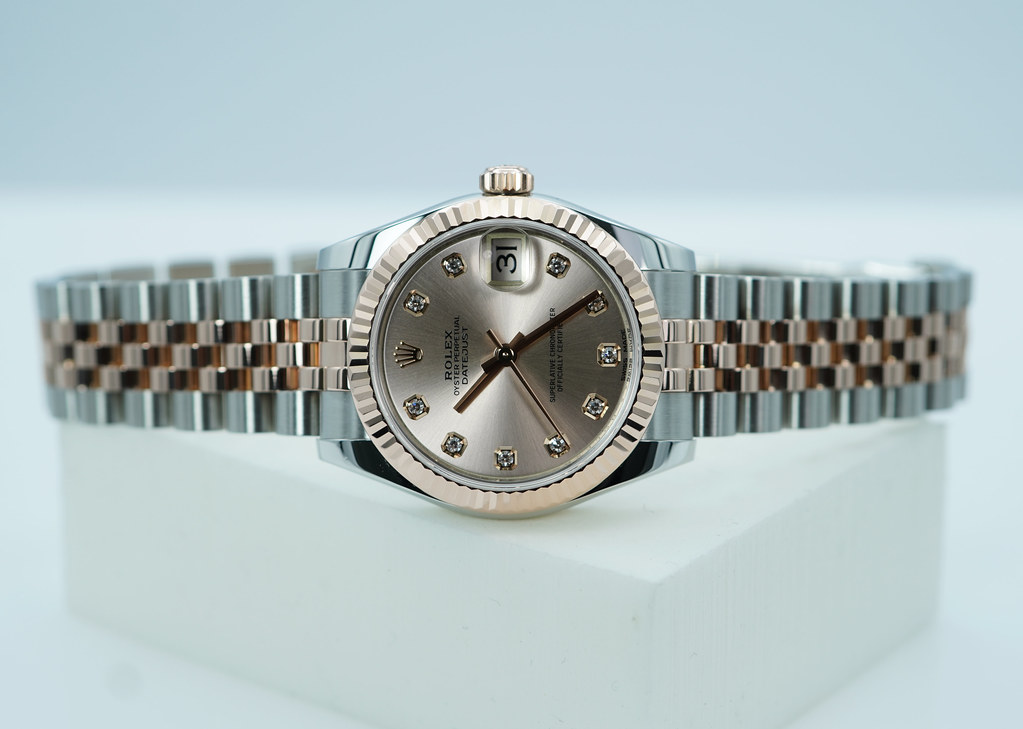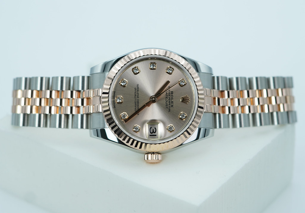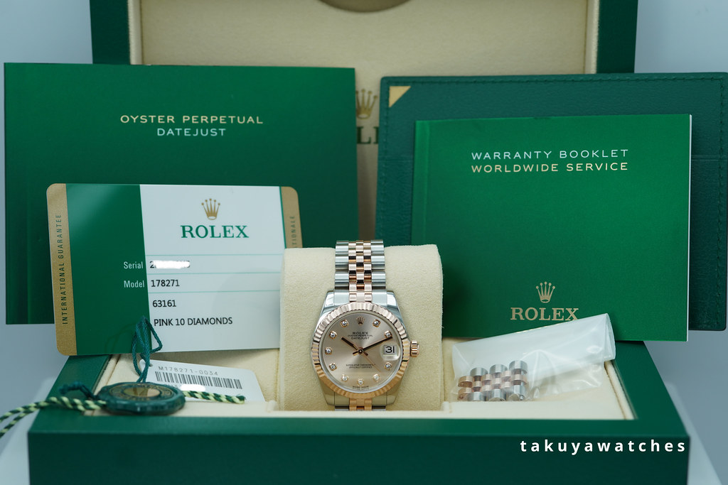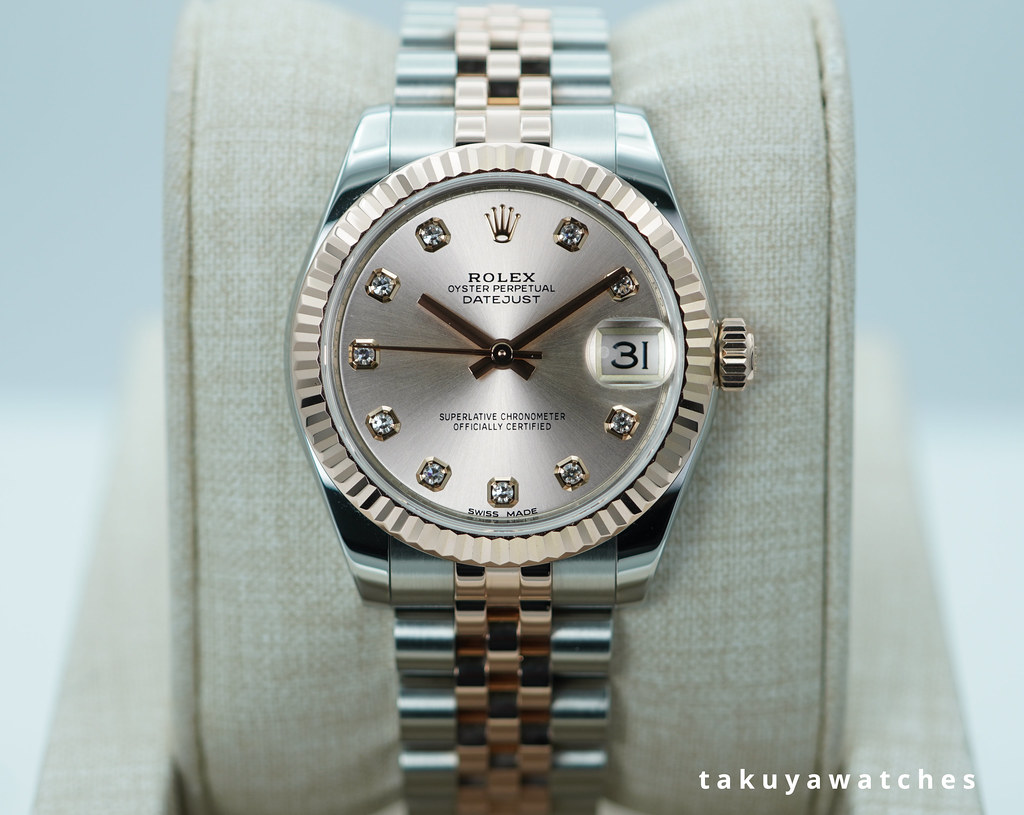 An Excellent Condition & Very Beautiful 31mm Rolex 178271 Datejust Midsize 18K Rose Gold & Stainless Steel with Pink Diamonds Dial. It’s on Jubilee Bracelet. Purchased from Rolex USA Authorized Dealer in 11.2018.