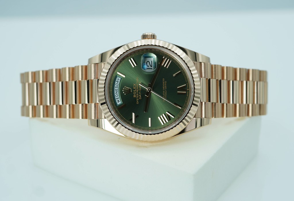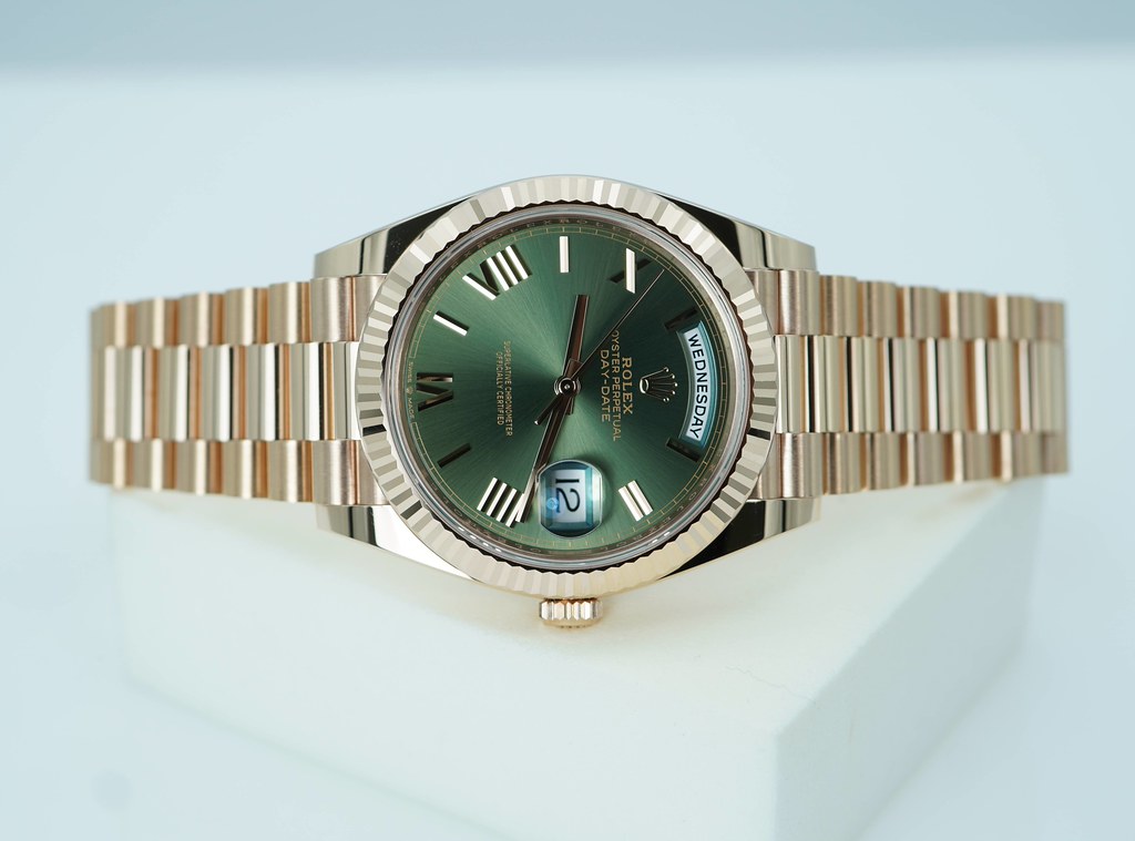 Rolex 228235 DAY DATE 40 18K ROSE GOLD OLIVE GREEN ROMAN DIAL 2024 WARRANTY FULL SET