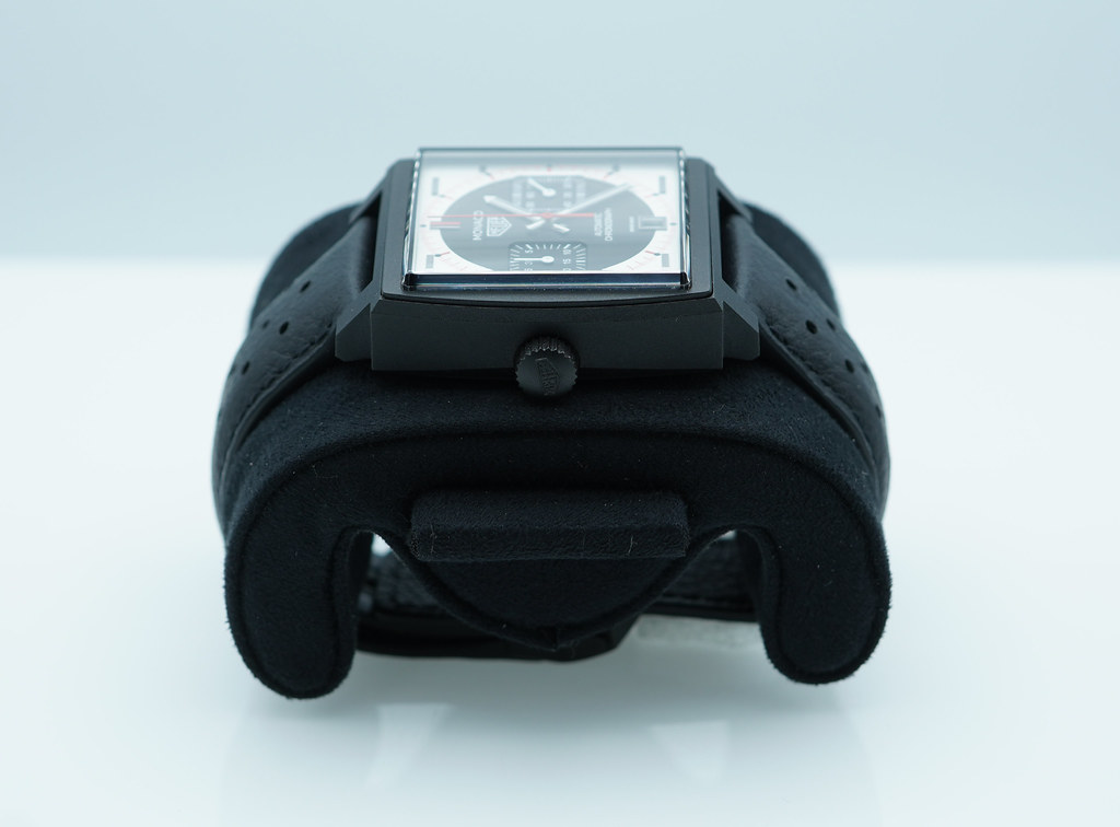 A Like New Condition & Very Beautiful 2025 Limited Edition of 970 Pieces Only, 39mm TAG Heuer CAW218F Monaco Calibre 11 Automatic Chronograph in Titanium with Black DLC Coated. Black & Silver Dial with Red Accents. It’s on Black Leather Strap Seth Folding Clasp. Purchased from TAG Heuer USA Authorized Dealer in 2025. Watch Running Perfect with Non Issues. Full Links. Full Set & Under 2 Years Factory Warranty.