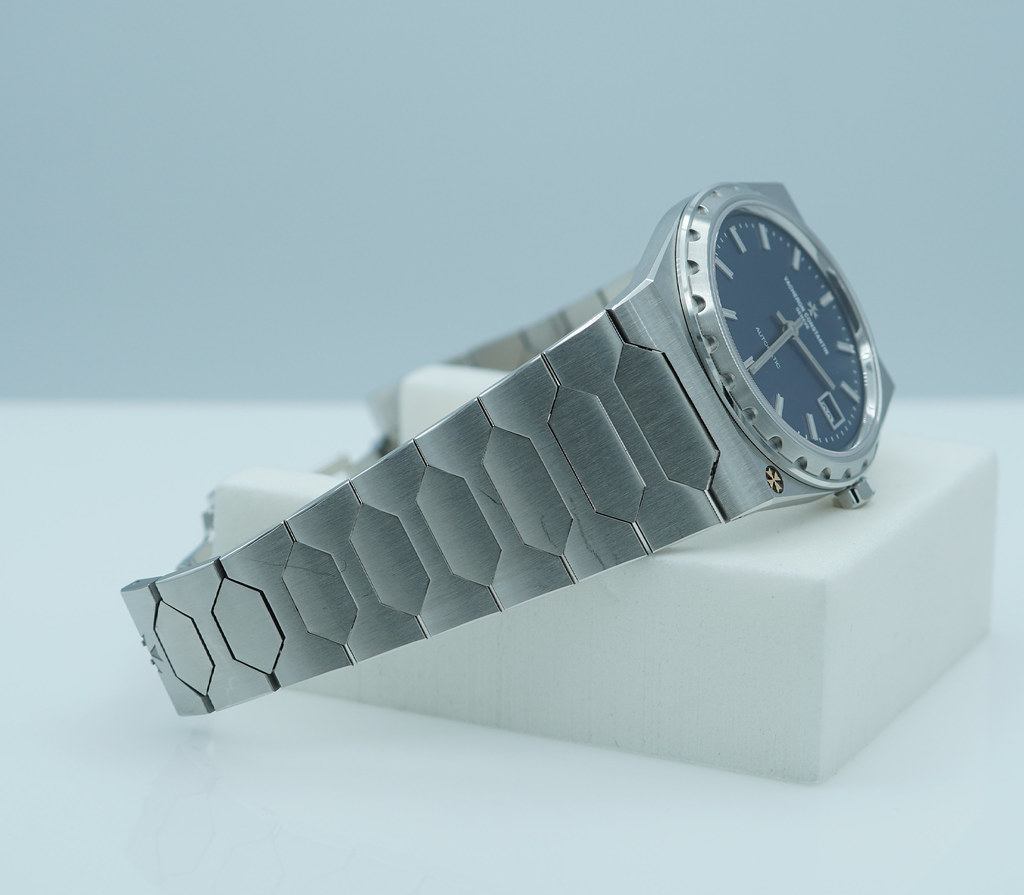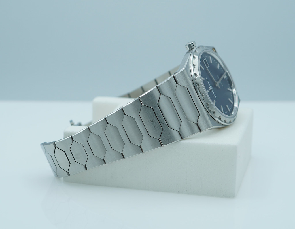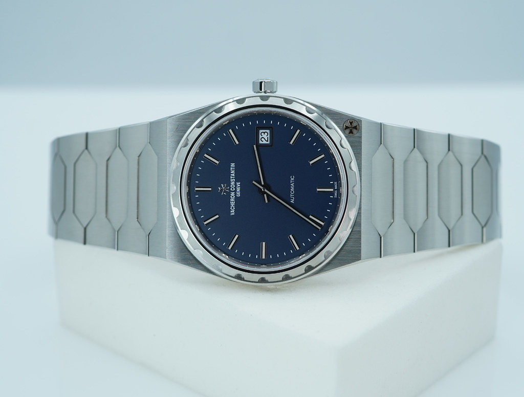 An Excellent, Unpolished Condition & Very Beautiful A Modern Reissue of the Legendary 1970s icon, 2025 Boutique Exclusive 37mm Vacheron Constantin Historiques 222 Stainless Steel with Blue Dial. Beautiful Automatic Vacheron Caliber 2455/2 with Yellow Gold Rotor. It’s on Steel Bracelet. Purchased from Vacheron Constantin Boutique in 06.2025.