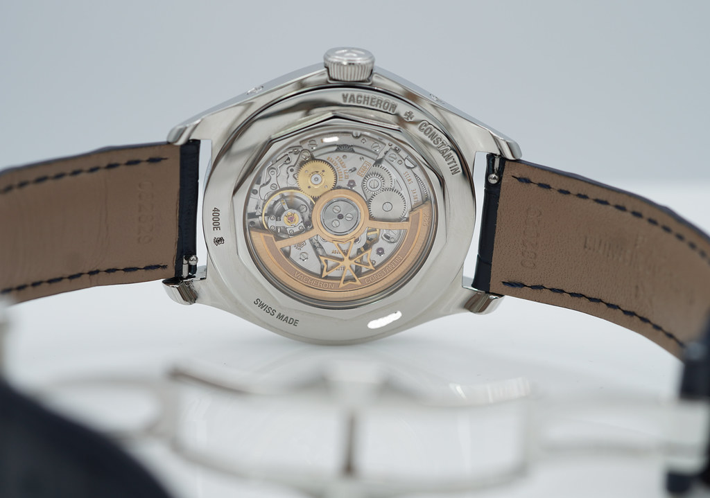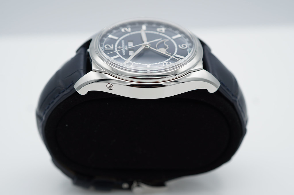 An Excellent Condition & Very Beautiful 40mm Vacheron Constantin Fifty Six 4000e Complete Calendar Stainless Steel with Beautiful Blue Dial, on Blue alligator Mississippiensis strap & stainless steel deployant buckle. Caliber 2460 QCL/1 automatic movement with its Hallmark of Geneva certification. Purchased from Vacheron Constantin Authorized Dealer in 02.2021. Watch Running Perfect with Non Issues. Full Set. Under 8 Years Factory Warranty.