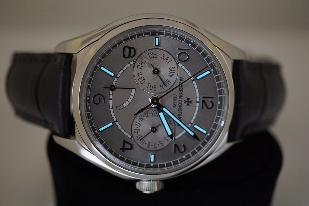 An Excellent Condition & Very Beautiful 40mm Vacheron Constantin Fifty-six Day Date Automatic, Stainless Steel Case with Grey Dial, & on Dark Grey Alligator Mississippiensis strap & Steel Deployant Buckle. Purchased from Vacheron Constantin Authorized Dealer in 03.2021.