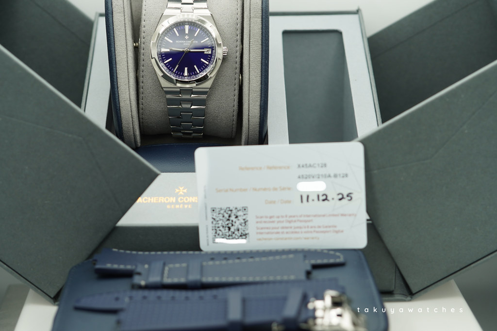 A Mint, Unpolished Condition & Very Beautiful New Model 2025 41mm Vacheron Constantin Overseas 4520 Stainless Steel with Blue Dial. Purchased from Vacheron Constantin Boutique in 11.2025. Watch Running Perfect with Non Issues. Full Links. Complete Set with Additional OEM Blue Leather Strap & Blue Rubber Strap with Stainless Steel Deployant Clasp. The Watch is Under 8 Years Factory Warranty.