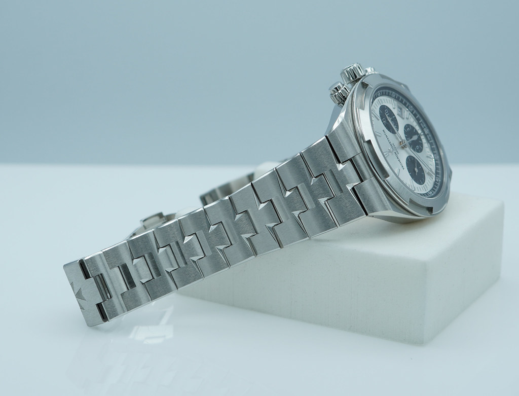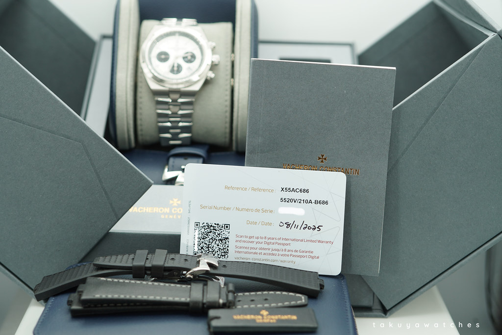 A Mint, Unpolished Condition & Very Beautiful New Model 2025 41mm Vacheron Constantin 5520V Overseas Chronograph Stainless Steel Automatic with Panda Dial. Purchased from Vacheron Constantin Boutique in 08.2025. Watch Running Perfect with Non Issues. Full Set with Additional Black Leather Strap & Black Rubber Strap with Steel Deployant Clasp. Under 8 Years Factory Warranty.